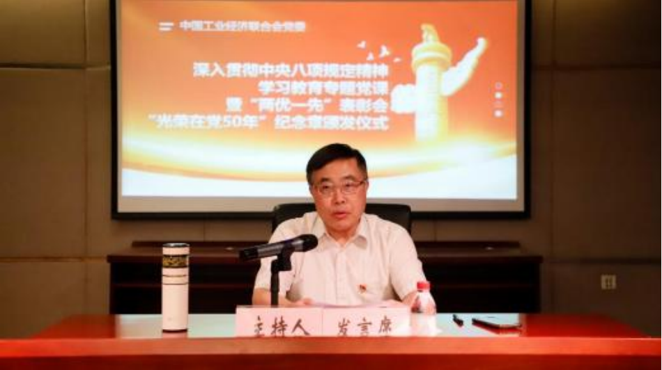在党的 104 岁生日到来之际,为扎实推进深入贯彻中央  八项规定精神学习教育,巩固学习教育成果,推进作风建设  常态化长效化,激励全系统各级党组织和全体党员同志进一  步坚定理想信念、筑牢奋斗根基,6 月 30 日下午,中国工业  经济联合会党委书记、执行副会长兼秘书长熊梦为党员干部  讲授专题党课, 中国工经联党委举行 2025 年“两优一先” 表彰会和“光荣在党 50 年”纪念章颁发仪式。中国工经联  党委副书记、纪委书记高家明主持活动。中国工经联党委委  员、纪委委员, 中国工业报社党委、中包联党总支、各党支  部负责同志,荣获表彰的个人和集体,老党员代表及中国工  经联本级党员同志近 70 人参加活动。
