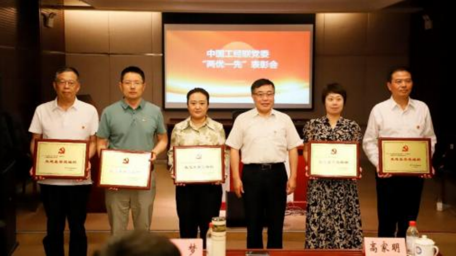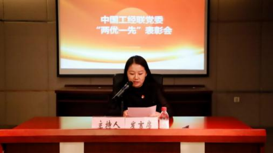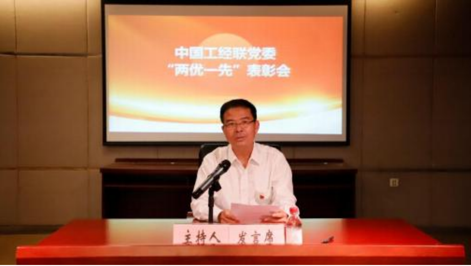 中国工经联党委副书记、纪委书记高家明宣读了《中国 工业经济联合会党委关于表彰“两优一先”的决定》,共有 5 家先进基层党组织、21 名优秀共产党员、 11 名优秀党务工作者获得荣誉。中国工经联党委书记、执行副会长兼秘书长 熊梦为获得荣誉的党组织和党员代表颁奖。随后,第八党支 部(中国医药教育协会党支部)宣传委员、终身荣誉会长黄 正明同志作为 “优秀共产党员”代表发言,中国工业报社党 委党办副主任焦钼茸同志作为“优秀党务工作者”代表发言, 第二十一党支部(中国企业改革与发展研究会党支部)书记 谭剑同志作为 “先进基层党组织”代表作交流发言。